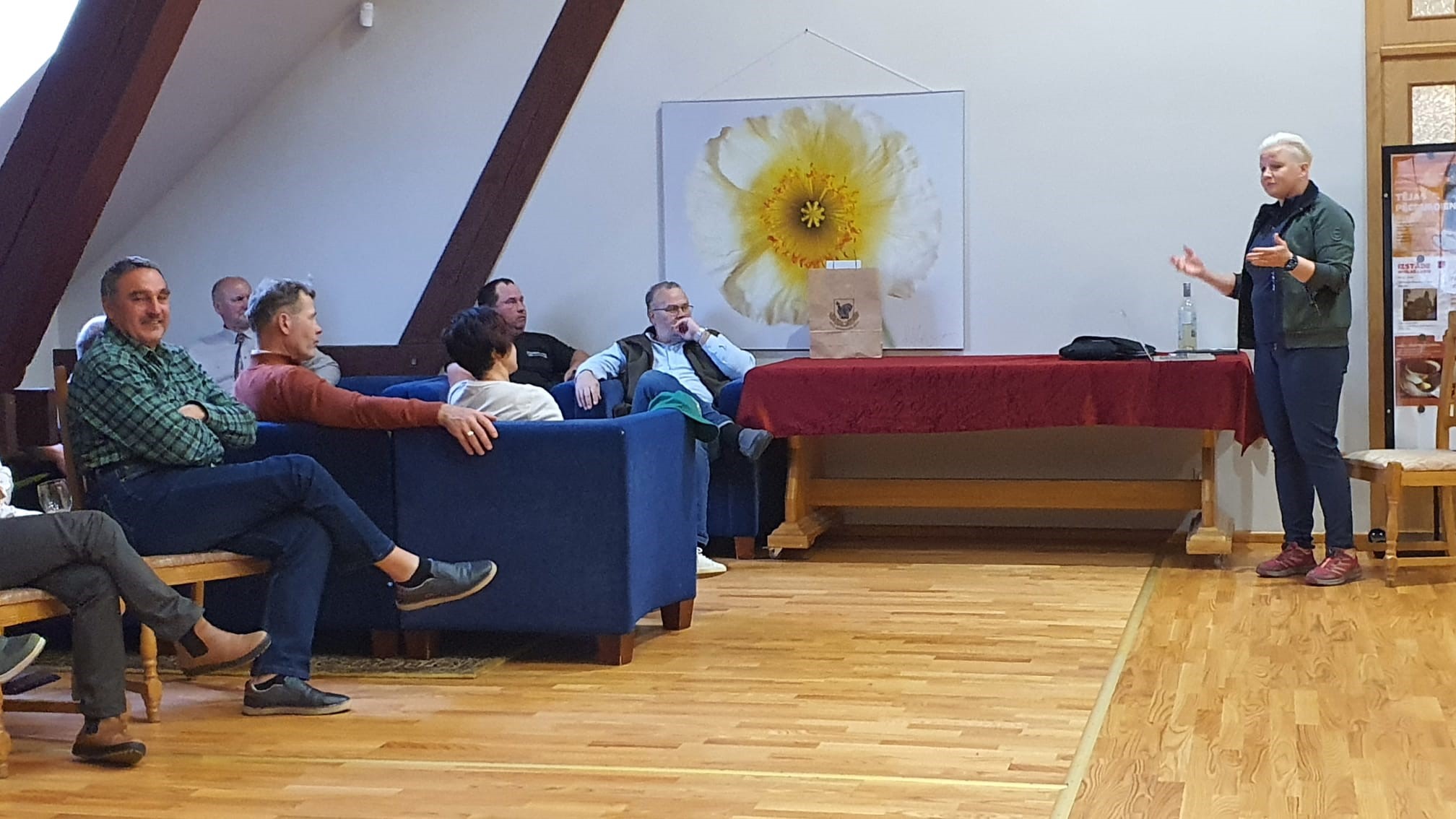 Päeva naelaks oli kohtumine FACE asepresidendi Linda Dombrovskaga, kes kureerib ka Läti jahimeeste seltsi. Linda tegi mahuka ettekande Läti jahindusest ja selle probleemidest. Peamiselt keskenduti suurkiskjatele ning sõralistele. Samuti vastas ta meie jahiseltskonna hulgalistele küsimustele.