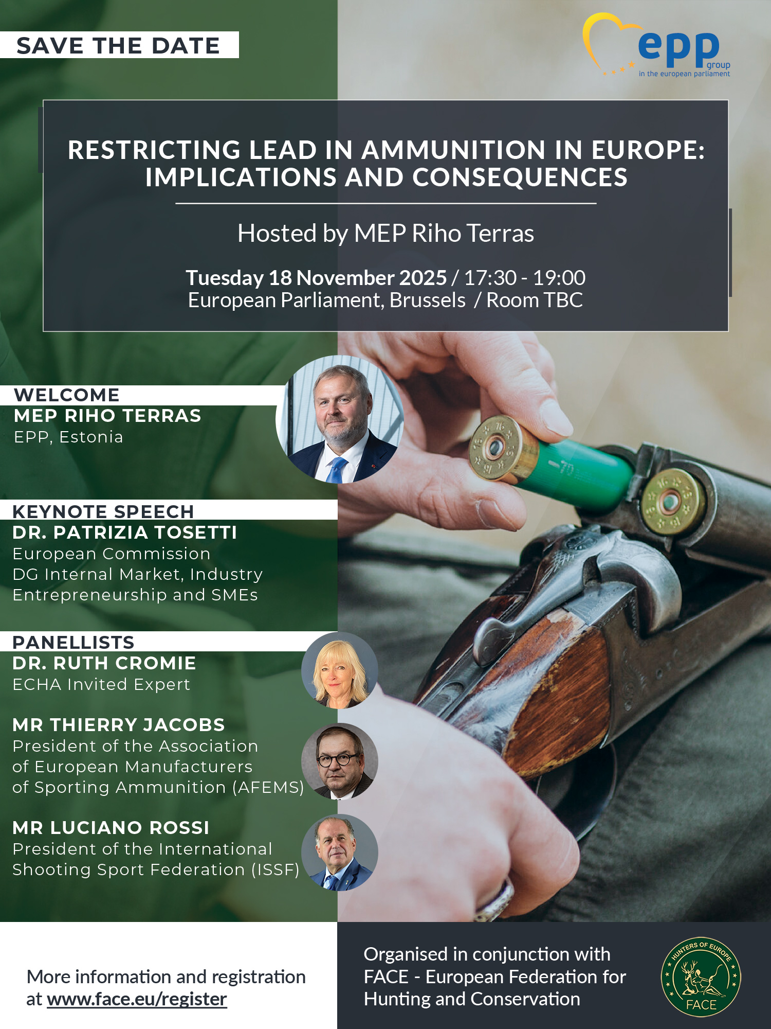 Ettepanek, mis võib oluliselt mõjutada jahindust ja laskespordi tegevusi üle kogu Euroopa, on praegu arutluse all REACHi komitees, kus liikmesriikide esindajad hindavad eelnõu. Sündmuse eesmärk on arutleda kavandatava piirangu tagajärgede ja mõjude üle.