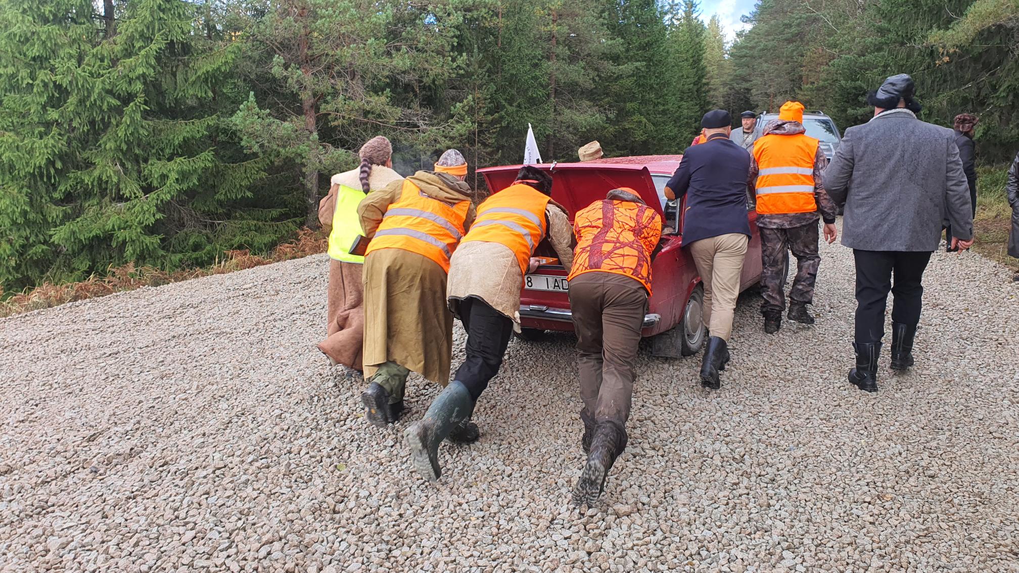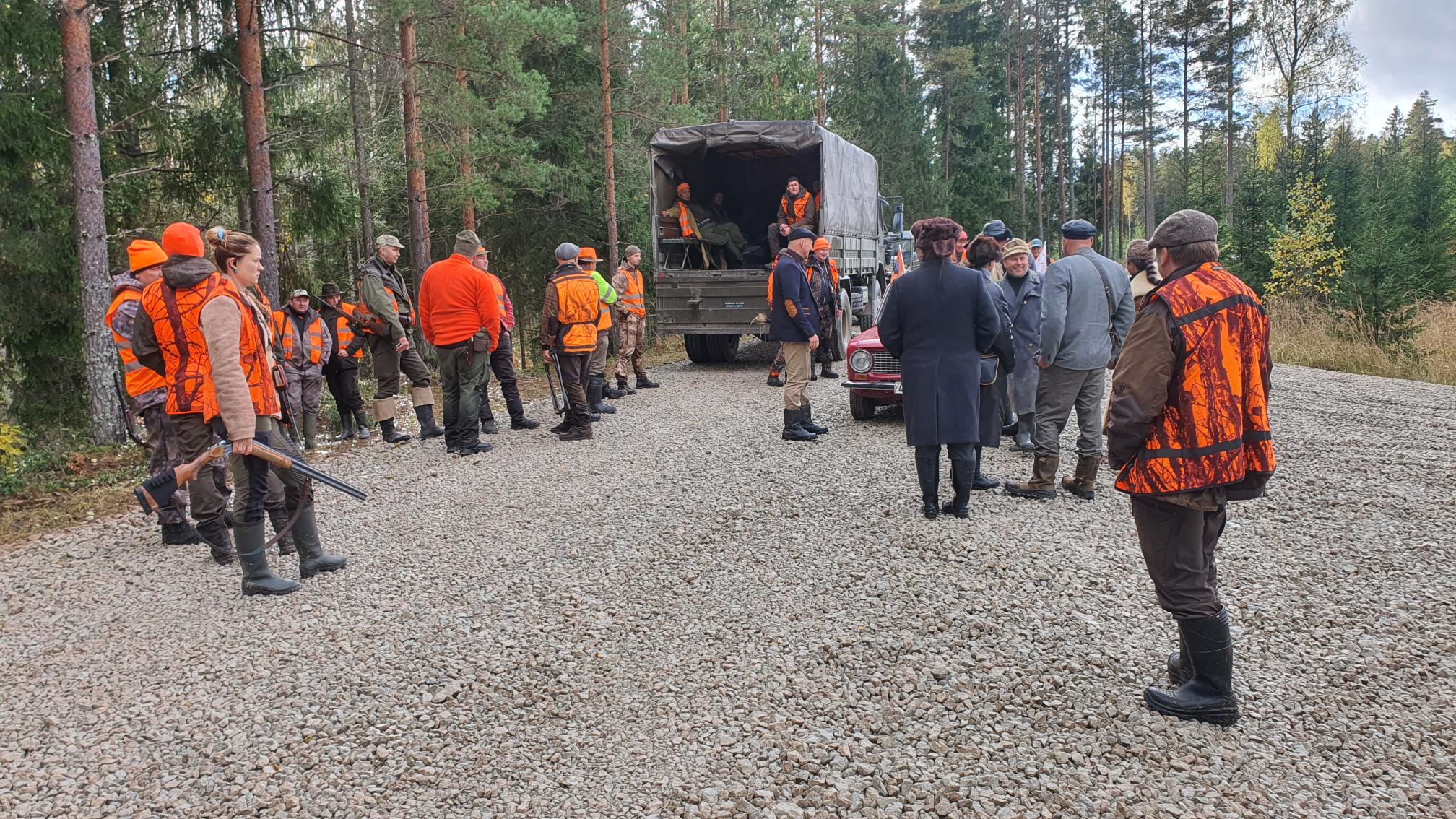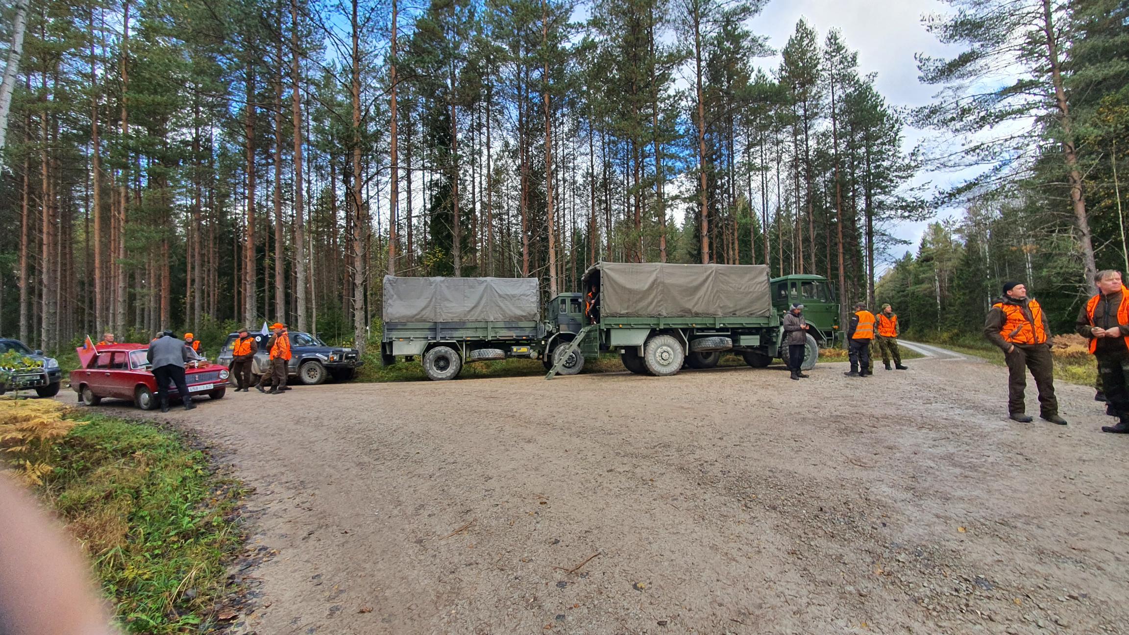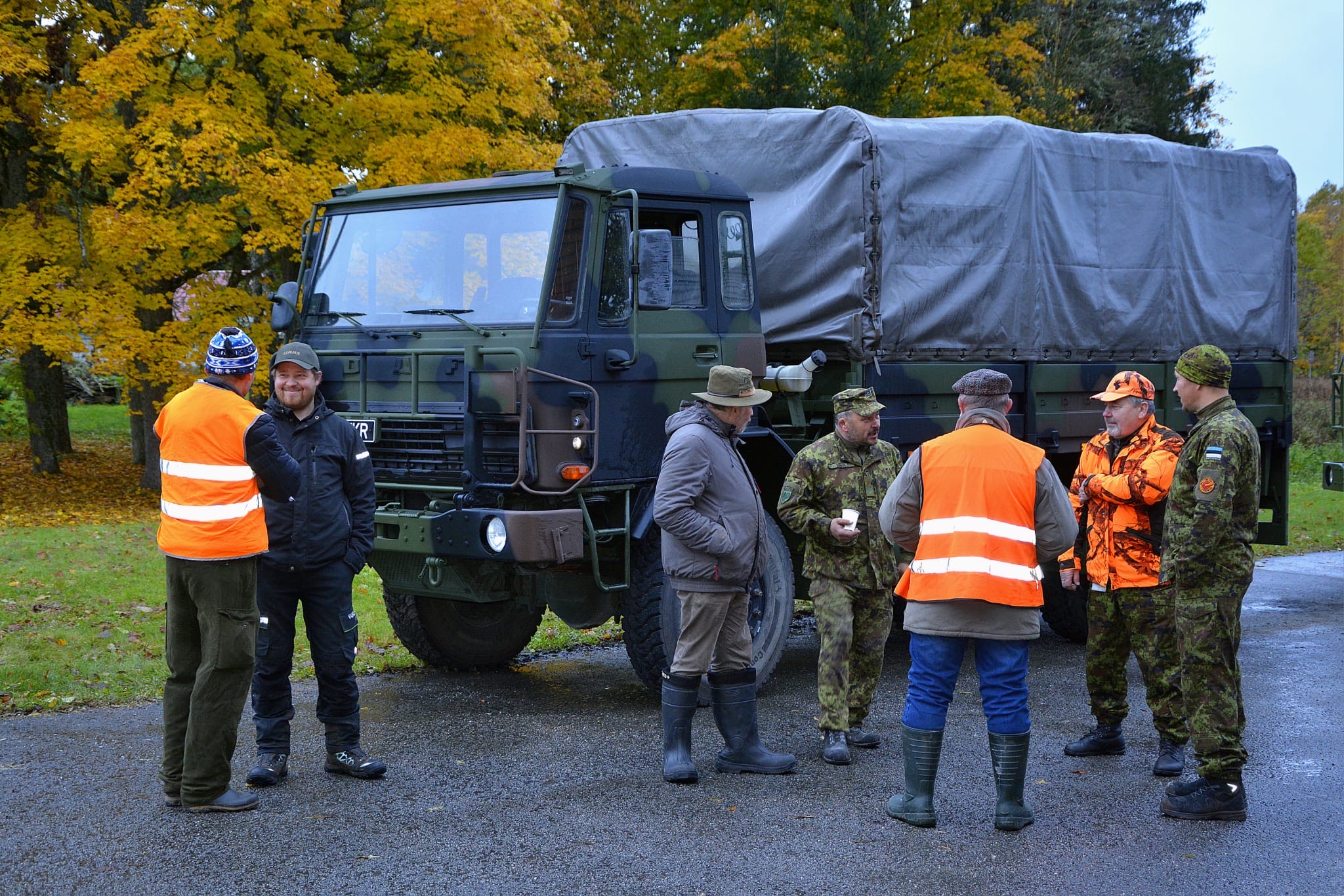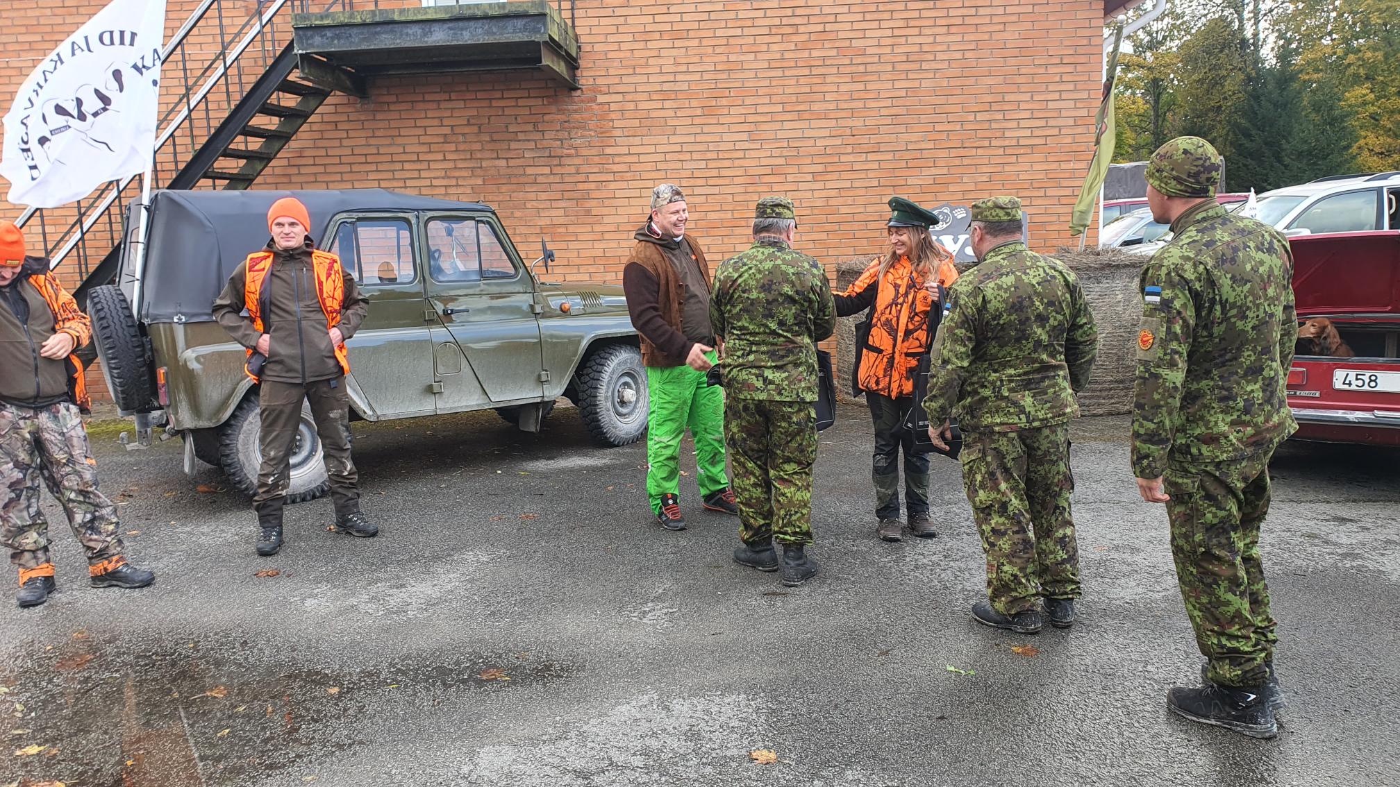 Oli märgata kohe, et jahimeeste koostöö Kaitseliiduga ei ole Ida-Virumaal vaid paberil, aga ka reaalses elus. Kaitseliidu mehed osalesid kolme veokiga, mis retro kombe kohaselt vedasid inimesi. Kaitseliidu mehed olid tublid ja said jahijuhataja poolt ka tänatud.