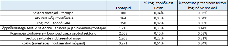 Kogu majanduslik mõju + lõppnõudlusega seotud sektorid |
