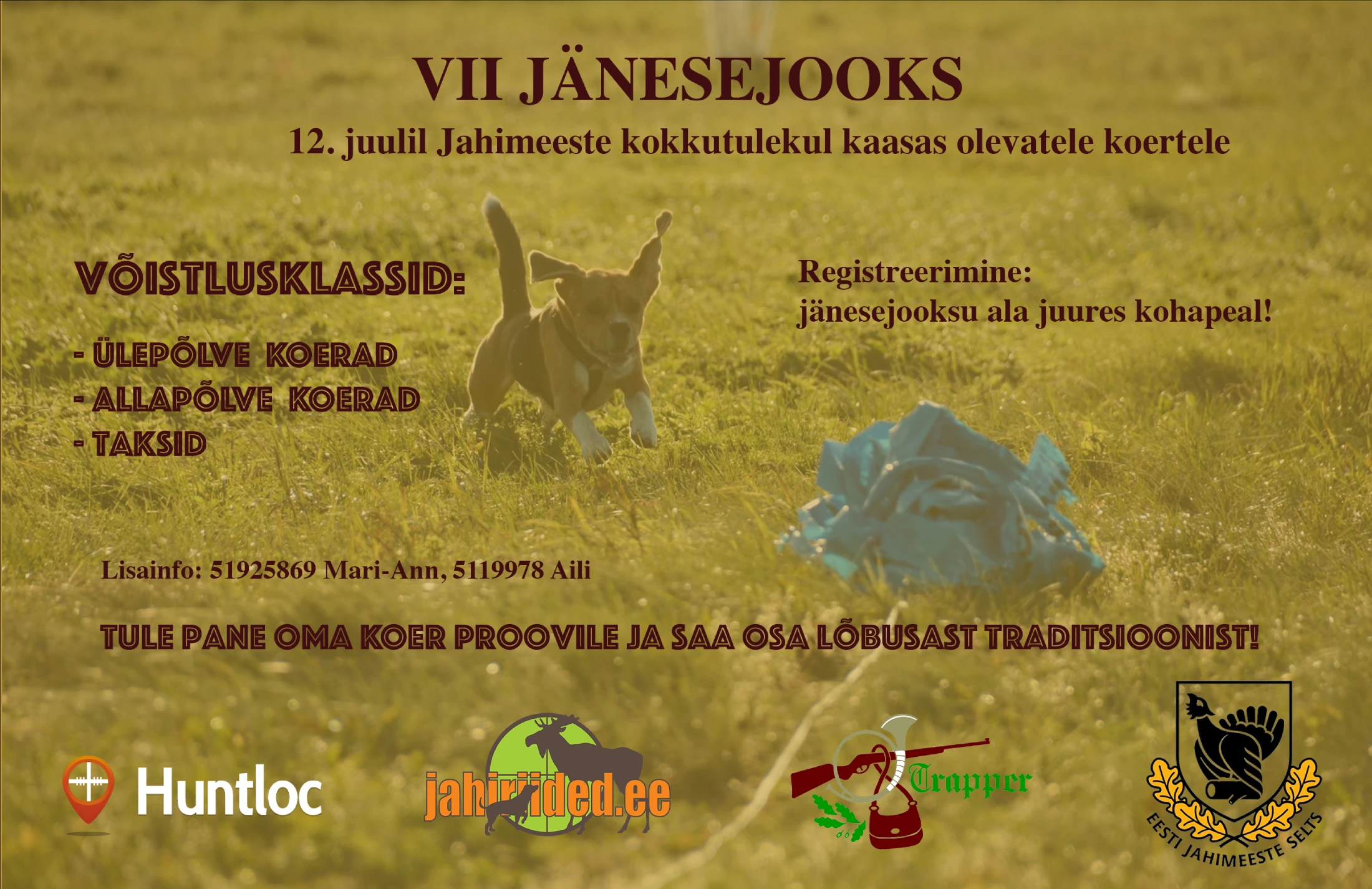Kokkutuleku teisel päeval, 12. juulil toimub koerte alal taas jänesejooksu võistlus.
