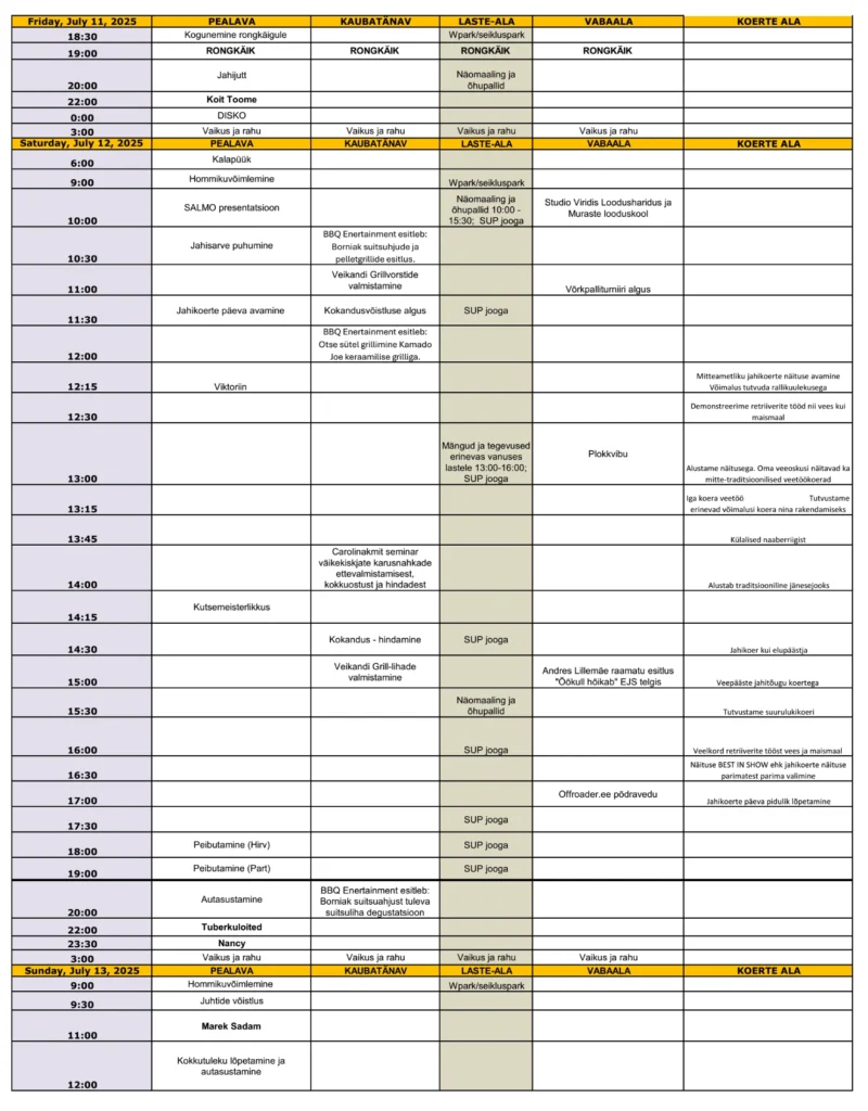 Tutvustus | Piletid | Asukoht | Võistlused | Tulemused | Auhinnad | Ajakava | Jahikoerte päev | Muud tegevused | Raadio | Artistid | Maavanemad | Kokkutuleku meened | Sisekord | Galerii | Kontakt | Toimunud kokkutulekud