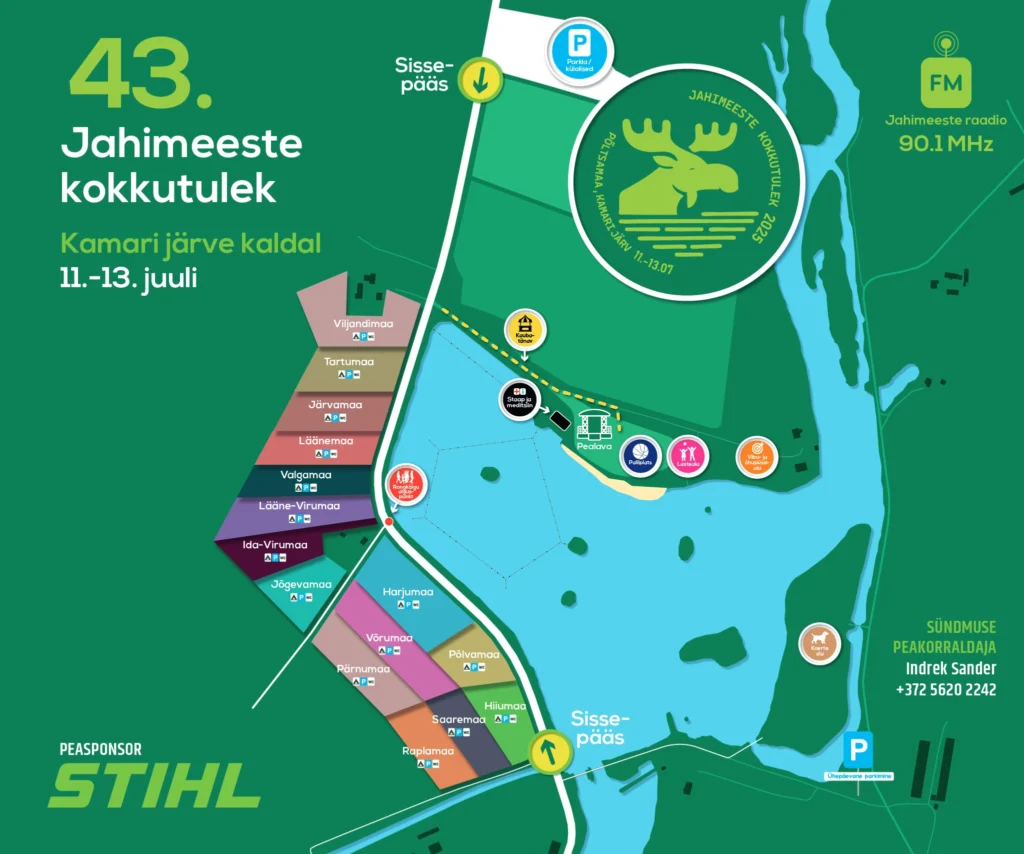 3. Sõidukid on lubatud territooriumile ainult eeskirjade kohaselt täidetud autoloa olemasolul. Maakondade majutusplatsidel ei ole soovitav sõidukitel liikuda sündmuse ajal. On lubatud ainult saabuda 11.07.2025 ja lahkuda 13.07.2025. Kui maakondades on külalisi, kes soovivad vahepeal lahkuda, siis nende jaoks on olemas eraldi parkimisplats ja telkimisala.