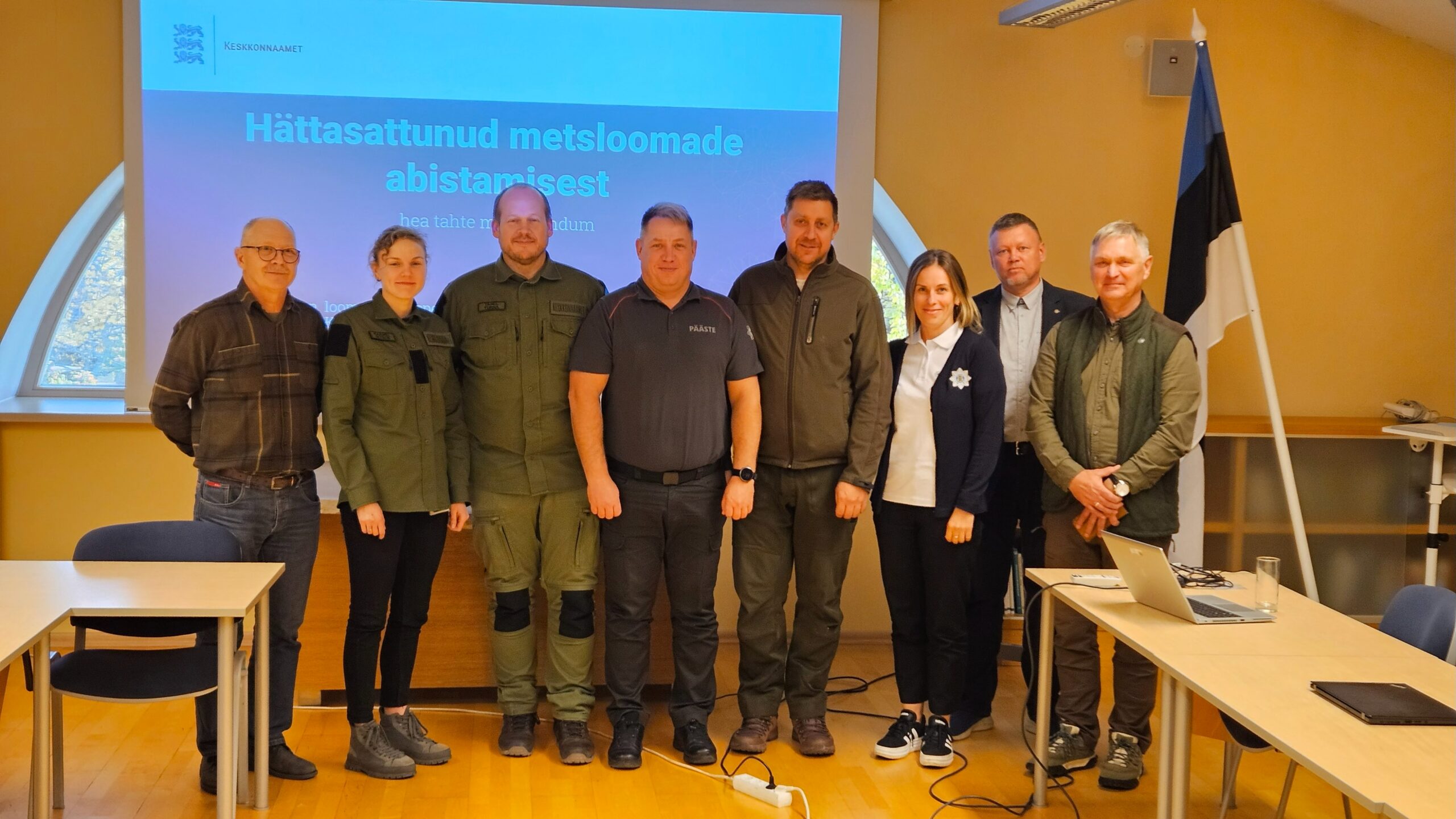Keskkonnaameti Kopli kontoris kohtusid Keskkonnaameti, Päästeameti, Politsei-ja Piirivalveameti, Häirekeskuse, Eesti Jahimeeste Seltsi ja Jäägriabi OÜ esindajad, et arutada koostöövõimalusi hättasattunud metsloomade abistamisel.