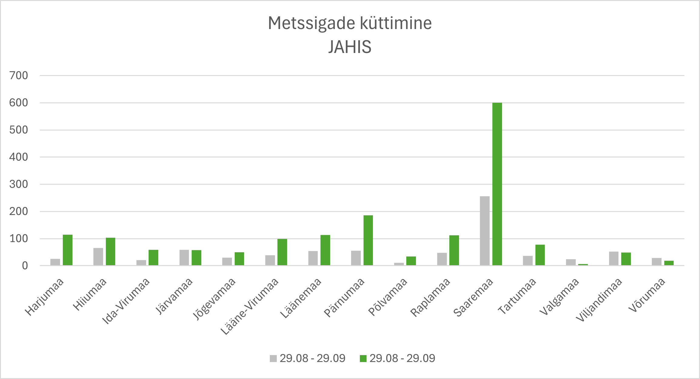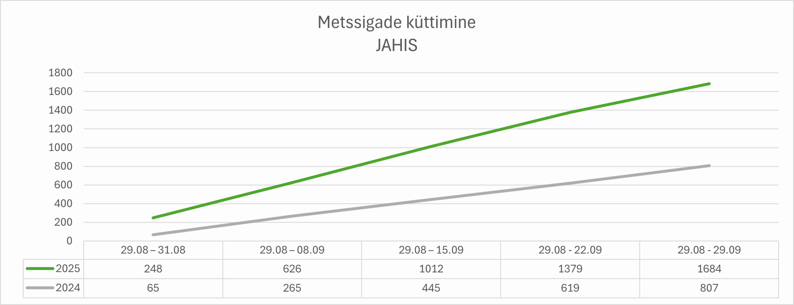 Alates küttimistoetuse maksmisest (29. augustist kuni 29. september) on kütitud Jahise andmetel 1684 metssiga. Eelmisel aastal kütiti samal perioodil Jahise andmetel 807 metssiga.