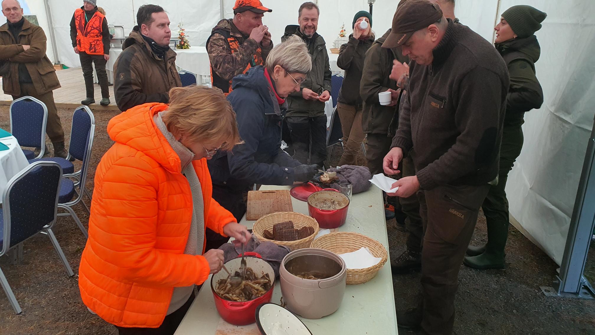 Samuti oli võimalus vaadata slaidiprogrammi RMK tegemistest nii arvudes kui pildis. Programm vaheldus Vereta jahi 2025 fotodega loodusest ja looduse asukatest. Kõige selle kõrvale sai maitsta metsaande.