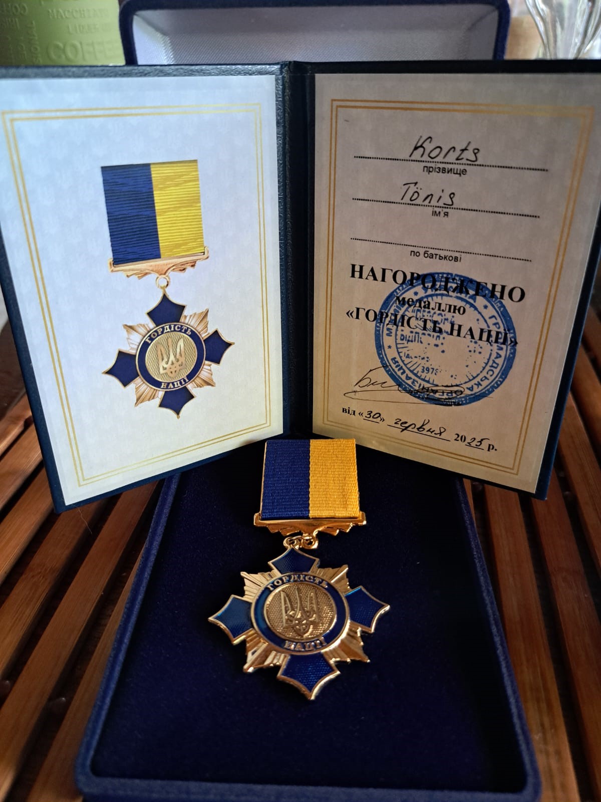 Ukraina riik autasustas 2022. aastal sõja kriitilisematel hetkedel Venemaa jõhkra rünnaku alla jäänud Kiievi lähistel asuva Makarivi, Baradjanka, Butsa ja Irpini piirkonnas aitamise eest Eesti Jahimeeste seltsi tegevjuhti Tõnis Kortsu Rahvusliku uhkuse medaliga.
